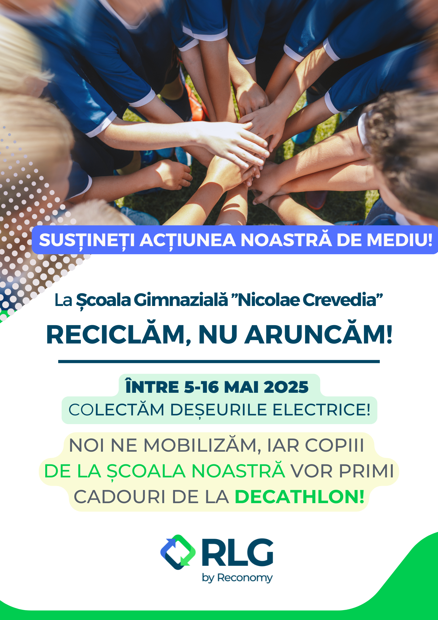 În perioada 05-16 Mai 2025, unitățile școlare de la nivelul comunei Crevedia Mare sunt implicate în  Programul Eco-Responsabilitate în Comunitate  (proiect realizat de RLG România).